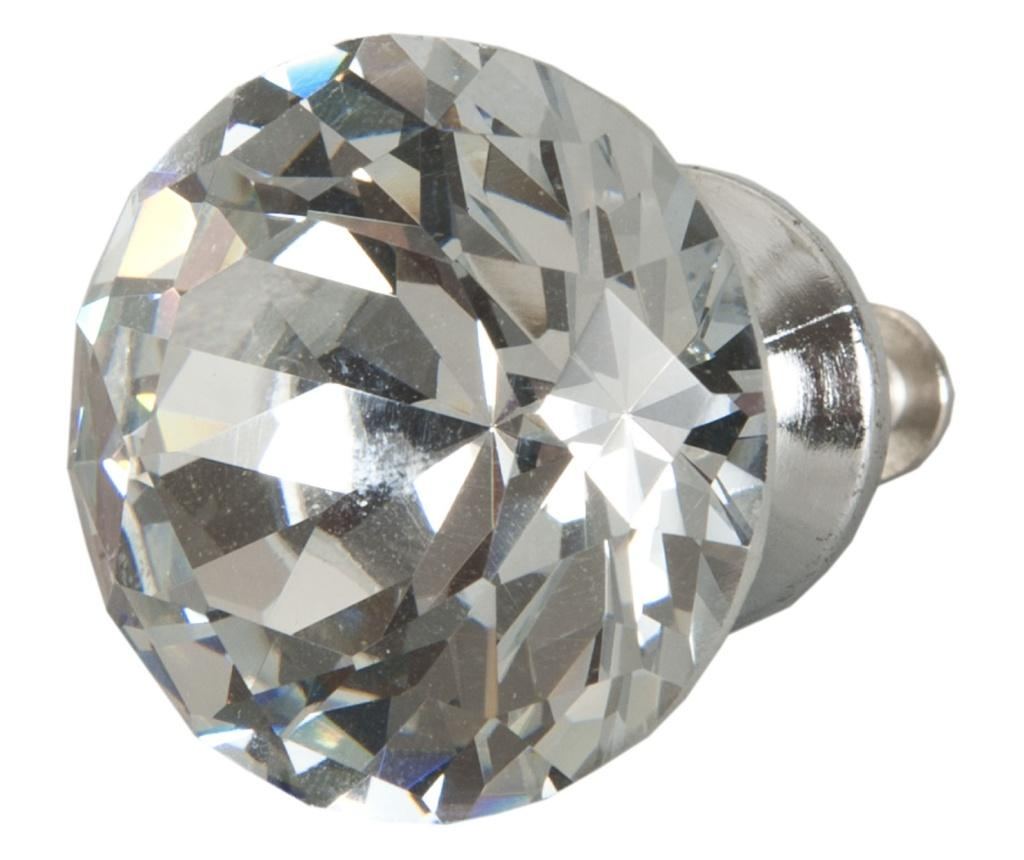 Zepředu vidíte průhledný kruh v jeho kulaté skleněné hlavě, což vytváří atraktivní prostorový efekt mezi knoflíkem a nábytkem.