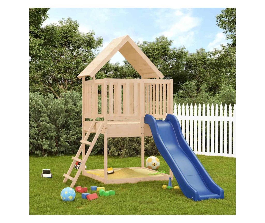 - Pozorný design: Dřevěné zábradlí kolem je navrženo tak, aby zajistilo bezpečnost dětí během jejich šťastné hry. Dřevěná střecha také poskytuje stín vašim dětem v horkých letních dnech.