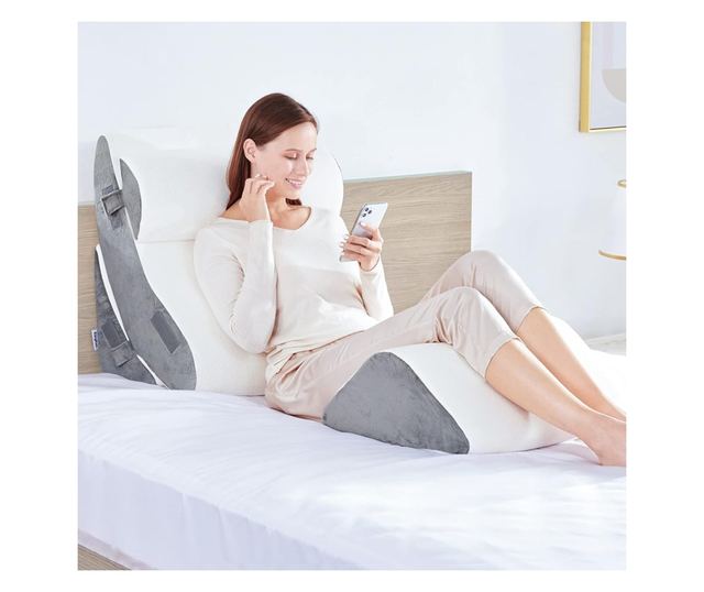 100% polyester ortopedické provedení možnost nastavení podle potřeby s odnímatelným potahem Problémům způsobuje usínání, nedokážete se pohodlně usadit na pohovce? Pořiďte si sestavu polštářů s ortopedickým provedením a paměťovou pěnou, která poskytuje dostatečnou oporu pro vaše záda, pas, krk a nohy podle vašich potřeb. Sestavu lze uspořádat podle potřeby, což zajistí pohodlný odpočinek a současně odlehčí vašim zádům, krku a nohám. Poskytuje pohodlnou oporu, takže si můžete pohodlně dívat na televizi nebo číst při jejím používání. Snadno se připevňuje suchým zipem. Potah je snadno omyvatelný a lze ho prát v pračce na 40°C. Paměťová pěna na polštář, který lze připevnit suchým zipem. Rozměr hlavního polštáře: 23,6 cm Rozměr opěrky: 60x68,8 cm Rozměr podpěry nohou: 45x60x19,5 cm Rozměr klínového polštáře: 24x32 cm Výplň: paměťová pěna, pěna Materiál: polyester, pěnová guma Rozměr balení: 40x25x62 cm Hmotnost balení: 4,6 kg Hmotnost výrobku: 4 kg