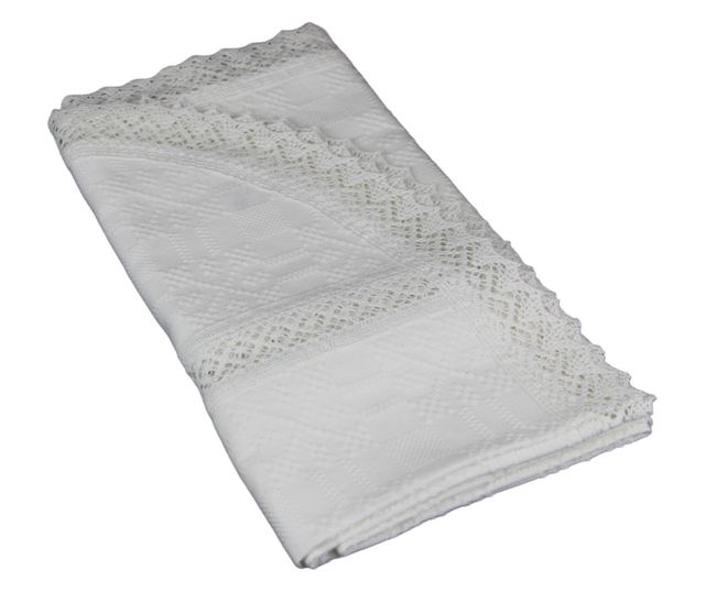 Bílý ubrus, 100% bavlna, tradiční design z Transylvánie.