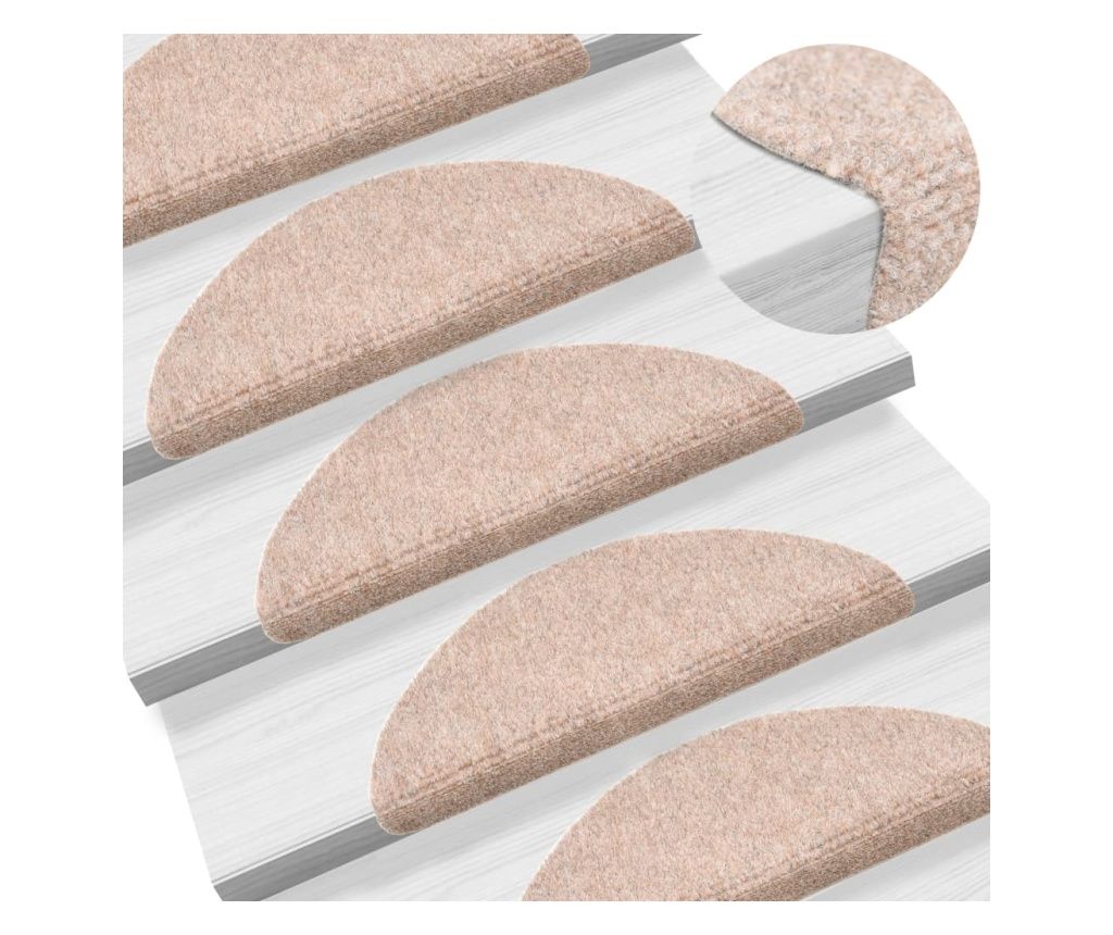 Koberce na schody, 15 ks, béžové, 60x25 cm, obdélníkové